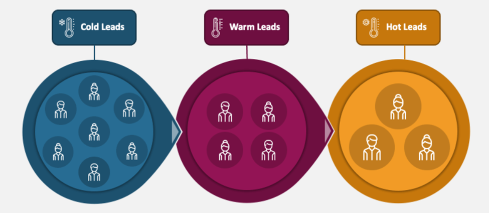 Hot leads are ready to buy, warm leads are exploring options, and follow-up leads are customers who may need reminders.